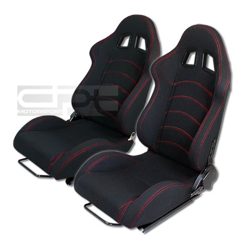 DPT, RS-T1-LR, Pair of Driver/Passenger Fully Adjustable Reclinable Black Canvas Cloth Red Stitch Type R Style Bucket Racing Seats Sliders Included Product Information