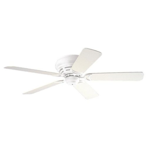 Finish:Textured White, Blade:White/Country Pine A flush-mount design is the perfect fit for lower ceilings. High performance 172 x 14 mm torque induction motor 12 degree blade pitch for optimum air movement Precision balanced motor for wobble-free operation Flush mount design for low ceiling clearances Oversize fan blades for increased air movement Sleek integral switch housing design Light kit and remote control adaptable Limited Lifetime Warranty ENERGY INFORMATION with fan at high speed: Air flow:4839 cubic feet per minute Electrical usage:69 watts