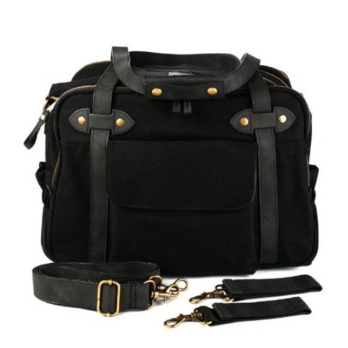 Finally, a true unisex bag to get you through the diaper years and beyond. This canvas workhorse looks as natural on Dad as it does on Mom, and is designed to hold everything you need for a trip to the playground or a day at work. The Charlie bag has a rugged canvas exterior with adjustable stroller straps and detachable messenger strap. The bag comes with a laminated change mat, built-in wallet, removable key clip, cell phone pocket (fits Blackberry or iPhone) and built-in dedicated sunglasses pocket. The interior compartments are laminated and wipe-able. The interior has a contrasting interior lining with clear and mesh pockets. There are two insulated side bottle pockets and a large insulated cooler bag pocket. The back flap holds bulky items such as newspapers, umbrella or yoga mat.
